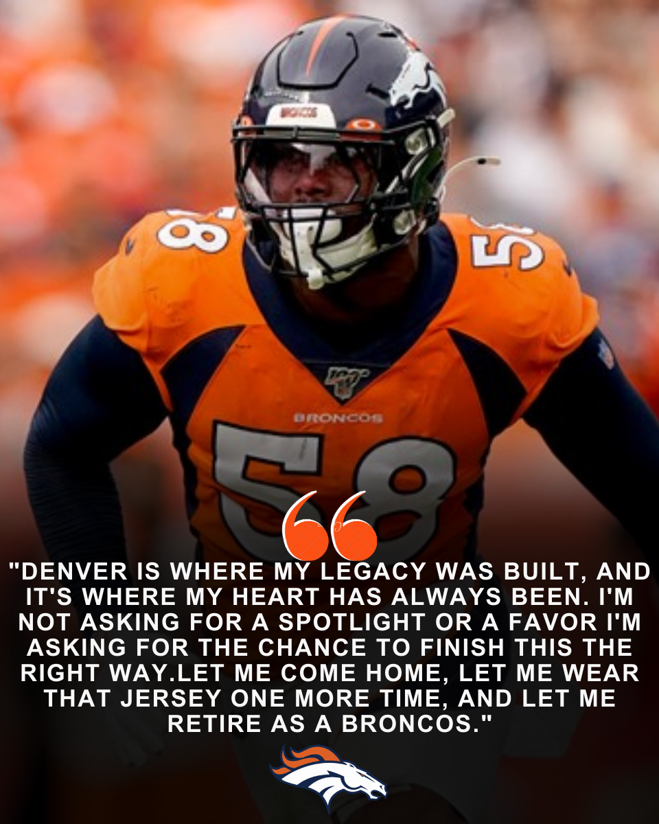 According to this fictional storyline, the Broncos legend has publicly expressed his desire to return to Denver and finish his career where it all began, with the franchise that turned him into a Super Bowl champion, a defensive icon, and one of the most beloved players in team history.